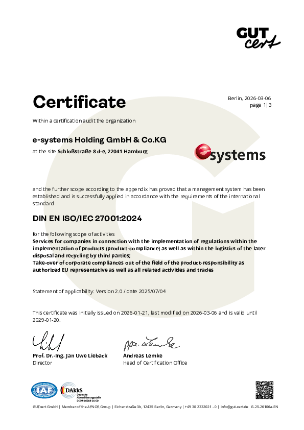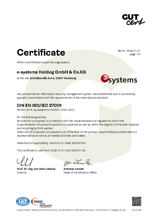 e-systems is certified according to DIN EN ISO/IEC 27001.